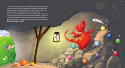 „Oh wie lustig, oh wie schön ist’s, wenn Drachen im Bergwerk graben geh’n! “ Der kleine Drache Neo hat sich heute etwas ganz Besonderes überlegt: er will im geheimen Drachenbergwerk so lange graben, bis er genügend funkelnde Zaubersteine für alle seine Freunde gefunden hat. Diese können nämlich die allergrößten Wünsche erfüllen.