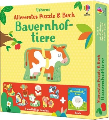 Wer hat bunte Federn und wer ruft wohl „Muh“? Dieses Set aus acht 2-teiligen Puzzles und einem 24-seitigen Begleitbuch bietet abwechslungsreichen Beschäftigungsspaß für die Kleinsten: Das Buch stellt mit fröhlichen Illustrationen und kurzen Texten die Bauernhoftiere vor, während die kunterbunten Puzzles die Fingerfertigkeit fördern.