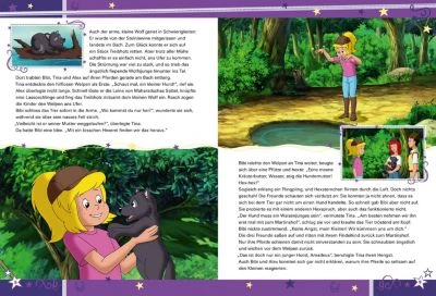 Bibi und Tina sind die allerbesten Freundinnen und erleben mit ihren Pferden Sabrina und Amadeus die tollsten Abenteuer. Sei dabei, wenn die beiden Mädchen einem süßen Welpen helfen, seine Mama zu finden, wenn sie in letzter Sekunde ein Naturparadies retten und schließlich noch einem fiesen Diamantenschmuggler das Handwerk legen! In diesem wunderschönen Gutenachtgeschichtenbuch können kleine Pferdefreunde Bibi und Tina bei ihren Erlebnissen begleiten und danach selbst glücklich ins Reich der Träume galoppieren.