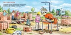 Ein Soundbuch, das Jungsherzen höher schlagen lässt! Sechs „wunderbare“ Baustellengeräusche sind hier in Szene gesetzt. Brummende Lastwagenmotoren, das Kratzen der Baggerschaufel, Stahlgeklapper, Hammerschläge, surrende Bohrmaschinen … Geschafft! Das Haus ist fertig. Klingel doch mal an der Haustür!Neben den beeindruckenden Originalgeräuschen kann man natürlich, wie bei jedem Band aus der Reihe Hör mal, auch mit den Augen jede Menge entdecken. Das erspart stundenlanges Rumstehen an Baustellenzäunen.