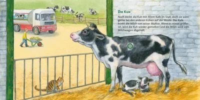 In diesem Bauernhofbuch lassen sich sechs typische Bauernhoftiere akkustisch zum Leben erwecken. So wird aus diesem Buch ein sinnlicher Besuch auf dem Bauernhof, da fehlt nur noch der Stallgeruch.