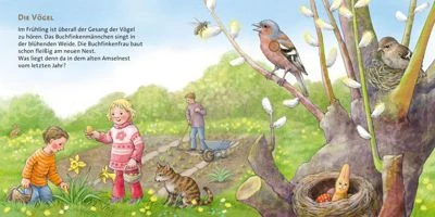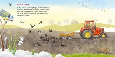 Sechs stimmungsvolle Geräusche lassen die vier Jahreszeiten für Kinder ab 2 Jahren lebendig werden. Wie in allen Bänden der Hör mal – Reihe gibt es auch hier eine Menge zu entdecken. Wer tuckert da im frühen Frühjahr über das Feld? Welcher Vogel baut da zwitschernd an seinem Nest? Im Sommer summt und brummt es in den Wiesen – die Bienen sind unterwegs. Hoch oben in der Luft fährt ein Heißluftballon. Man kann sein Fauchen bis unten hören. Der Herbst brigt Sturm und raschelndes Laub, die Gänse rufen zum Flug in den Süden. Für uns geht das Jahr mit einem fröhlich krachenden zischenden Feuerwek zu Ende. Ob die Tiere im Wald sich darüber auch freuen?
