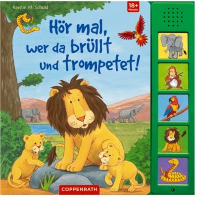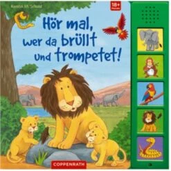 Hier kannst du viele wilde Tiere entdecken – und jedes Tier klingt anders!“Töröö“, trompetet der Elefant.“Roaar“ brüllt der Löwe.Und wie macht der Affe?Drück doch mal auf den Knopf!