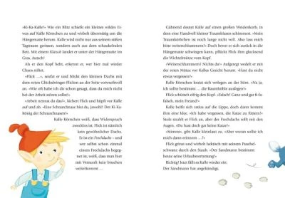10 abgeschlossene Geschichten für die schönsten Träume – zum gemeinsamen Vorlesen ab 3 Jahren.Als Urlaubsvertretung des Sandmanns erleben Traumwichtel Kalle Körnchen und sein Freund Flick die tollsten Abenteuer! Sie zähmen übermütige Schäfchen, bringen einem Sternschnuppen-Mädchen das Fliegen bei und finden verschwundene Traumblasen wieder. Mit jeder Menge funkelndem Schlafsand im Gepäck nehmen es die Freunde selbst mit der größten Schnarchnase auf …