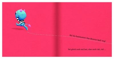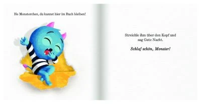 Schöner kann man sein Kind nicht ins Bett bringenAch, du liebes Lieschen! In dieses Buch hat sich ein kleines Monster geschlichen! Wer hilft mit, es zu verscheuchen? Mit Schütteln, Pusten, Wedeln, Drehen und am Ende ganz, ganz viel Lärm gelingt es schließlich, das freche kleine Monster loszuwerden. Doch, schwups, ist es ins Zimmer entwischt – und da hat es ja nun überhaupt nichts zu suchen. Also husch, zurück ins Buch gelockt, über den Kopf gestreichelt … und Gute Nacht, kleines Monster.