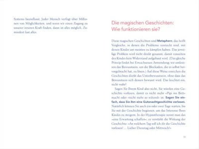 Wutanfälle, übermäßige Schüchternheit, unruhiger Schlaf, Bettnässen … viele Kinder sind mit Problemen konfrontiert, die sie allein nicht bewältigen können und auch ihre Eltern oft ratlos machen. Die Therapeutin Valérie Roumanoff hat in diesem Buch 15 therapeutische Vorlesegeschichten gesammelt, die Kindern auf natürliche und sanfte Weise dabei helfen, Probleme in Kindergarten und Grundschule in den Griff zu kriegen. Dieses Buch kombiniert die Freude an Geschichten mit der Wirksamkeit von Metaphern, die Kindern dabei helfen, sich unterbewusst mit bestimmten Mustern auseinanderzusetzen, Schwierigkeiten zu überwinden und selbst Lösungen zu finden. Geeignet für Kinder ab 3 Jahren.