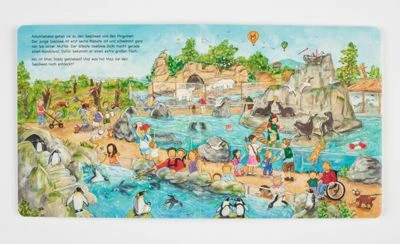Allererster Wimmel-Suchspaß bei den Zoo-Tieren für Kinder ab 2 JahrenEin Tag im Zoo ist immer schön! Das finden auch Max und Mia. Auf ihrem Rundgang durch den Streichelzoo, bei den Pinguinen und Seelöwen vorbei und nicht zuletzt bei den lustigen Erdmännchen und Alpakas können kleine Betrachter jede Menge entdecken.Die Bilder werden von einfachen Suchaufgaben begleitet – so klappt der Einstieg in die Wimmelbuch-Welt garantiert!Schumann, SibylleSibylle Schumann studierte Literatur- und Medienwissenschaft an der Universität Konstanz. Sie arbeitet als Lektorin in einem Kinderbuchverlag und schreibt auch selbst gerne Kurzgeschichten und Wimmelbuchtexte für die Kleinsten.Kugler, ChristineChristine Kugler wurde 1982 in Hersbruck geboren und ist mit ihren Eltern, Geschwistern und Großeltern in einem kleinen Dorf im Kreis Nürnberger Land aufgewachsen. Schon als Kind malte und zeichnete sie zu den Büchern, die sie las, ihre eigenen Bilder. Und so ist sie heute, nach dem Kunstpädagogikstudium an der Akademie der Bildenden Künste in Nürnberg, als freischaffende Kinderbuchillustratorin tätig. Am liebsten arbeitet sie draußen im Garten: „Wind, Sonne, Blumen und Bäume sind einfach Balsam für die Seele!“ In ihrer freien Zeit hält sie sich gerne in der Natur auf, geht Spazieren, Wandern oder Radeln und/oder verbringt ein paar schöne Stunden mit Freunden und Familie.