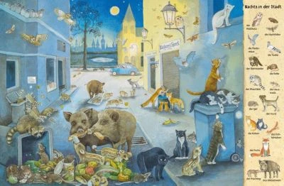 Während in der Nacht fast alle Menschen schlafen, beginnt in der Natur für viele Tiere erst der Tag. Die detailreichen Wimmelszenen umspannen dabei einen Zeitraum vom Sonnenuntergang bis zum Sonnenaufgang. So können schon kleine Kinder die Tiere auf ihren nächtlichen Ausflügen durch das Buch begleiten und Spannendes entdecken, was normalerweise im Dunkeln liegt …