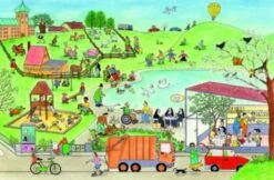 In Wimmlingen ist so viel los – besonders auf dem Bahnhof im Sommer! Bei diesem großen Puzzle mit 104 Teilen können kleine Wimmelfans ihre Feinmotorik und ihren guten Blick unter Beweis stellen. Fertig gepuzzelt hat das Motiv ein Format von 48 x 32 cm.