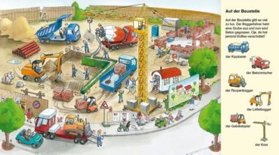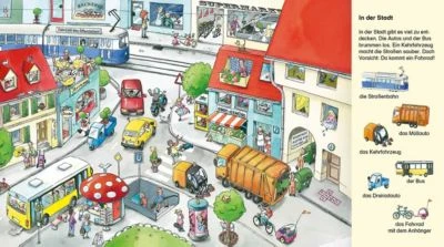 Was für ein Verkehr!Auf der Baustelle, in der Stadt, am Bahnhof – überall saust, rollt und fährt es: Da hebt ein Baggerfahrer eine Grube aus, hier reinigt ein Kehrfahrzeug die Straßen, dort fährt jemand Fahrrad – schneller geht’s mit der Straßenbahn. Und wer kommt da mit Tatütata? Ein toller Wimmelspaß zum Suchen und Finden!- Liebevolle Wimmelszenen für kleine Fahrzeugfans- Erste spielerische Verknüpfung von Bild und Sprache- Förderung der KonzentrationsfähigkeitDieses Pappbilderbuch bietet Suchspaß zum Entdecken und Wiedererkennen von beliebten Fahrzeugen wie Bagger , Polizeiauto , Feuerwehr & Co. und unterstützt so den Spracherwerb von Kleinkindern.“Kindgerechte Suchaufgaben helfen dabei, Wort und Bild sinnvoll zu verbinden und fördern so den Spracherwerb.“Das SpielzeugWieker, KatharinaKatharina Wieker hat schon brömpfhundertwümpfzig Kinderbücher geschrieben und illustriert und ihr fällt immer noch etwas Neues ein. Sie lebt mit ihrer Familie in Berlin.Leiber, Lila L.Lila L. Leiber studierte Werbegrafik und arbeitete danach in verschiedenen Agenturen. Seit 1982 lebt sie in Hannover. Lila Leiber hat bereits zahlreiche Kinder- und Schulbücher illustriert. Ihre besten Kritiker sind ihre beiden kleinen Söhne David und Robert.